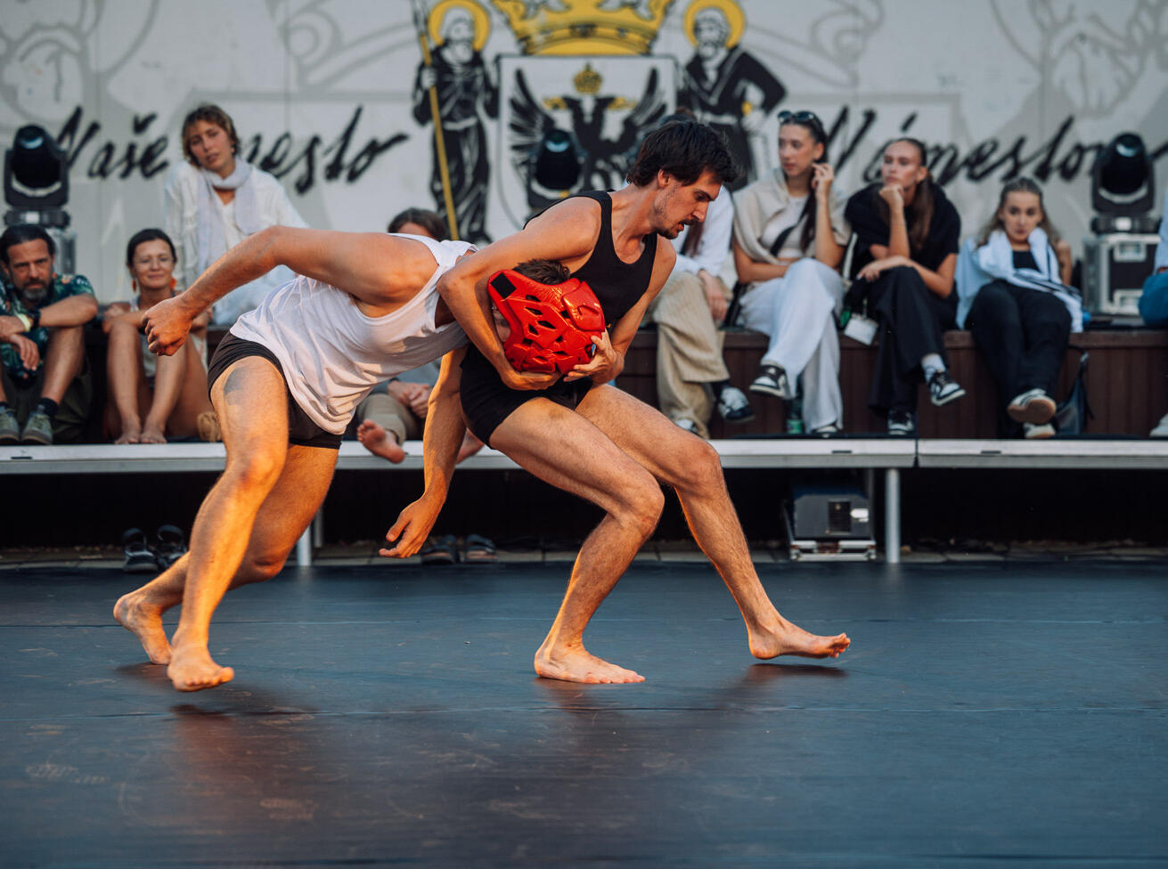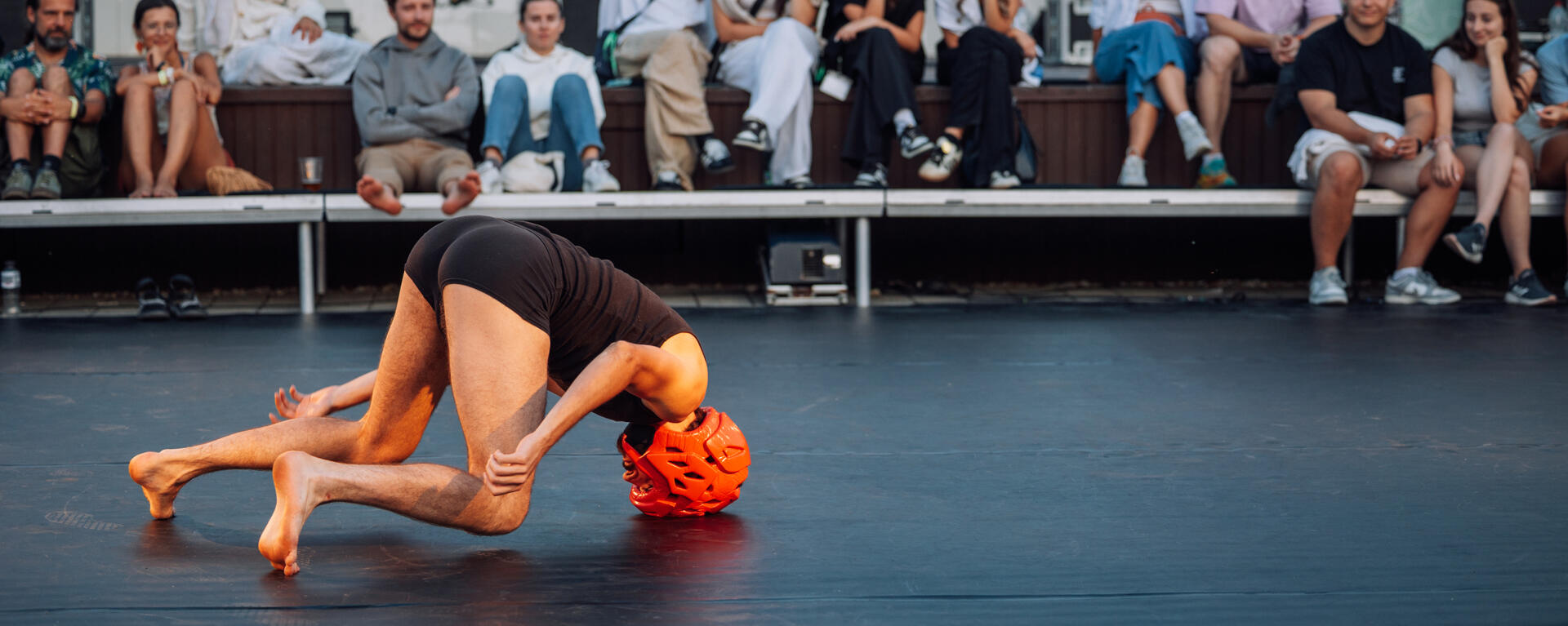 SYMPHONICASymphonica is a improvised duett, performed in tension between power and play. Possession, obsession and absurdity of conveing each individuals goal and wants are expressed through the element of a red boxing helmet.Symphonica is a show that plays around the notion of the D’s, Desire and Demand.